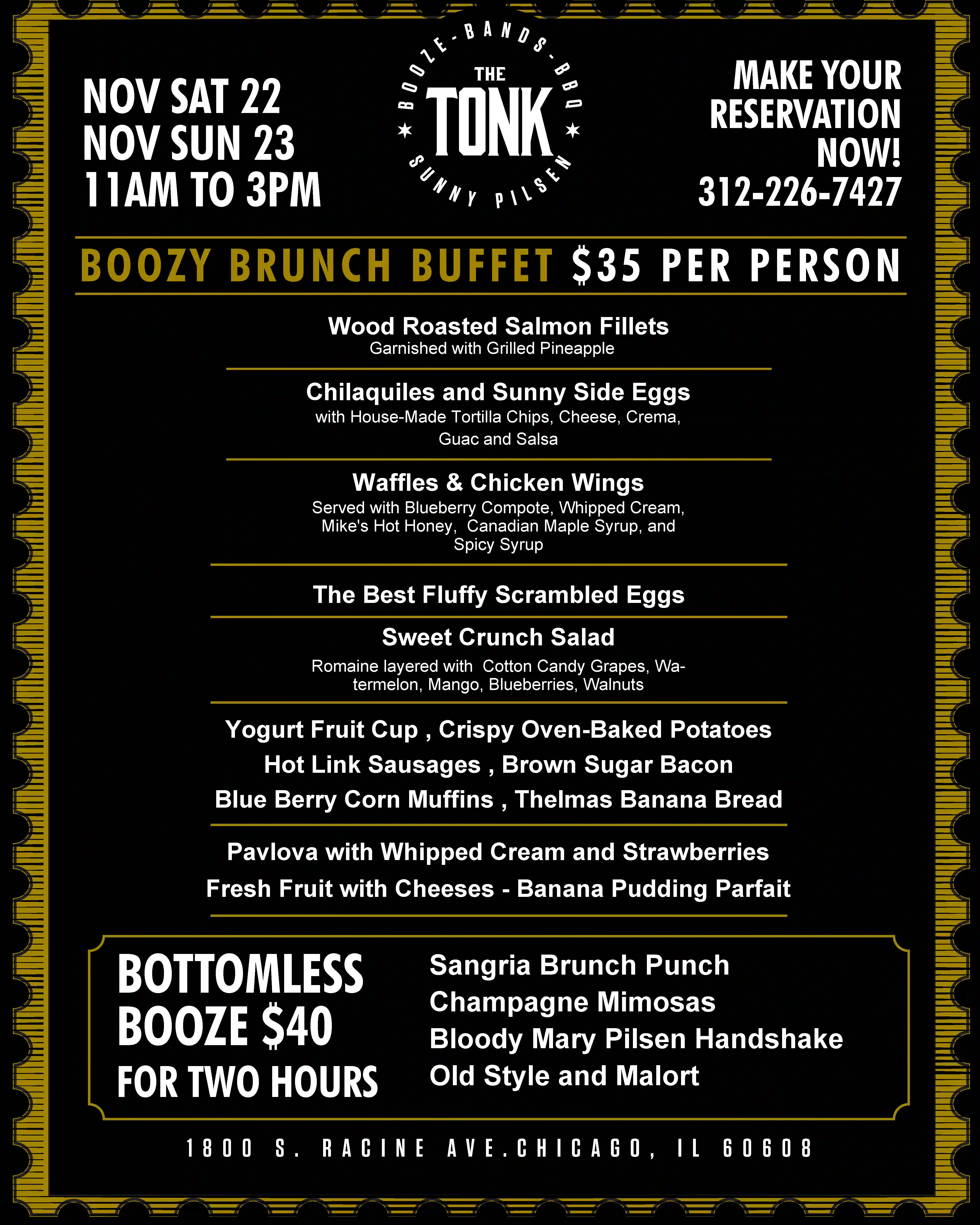 Join us in Pilsen Saturday and Sunday for Brunch! Music from DJ Pete Phunk and Gil G. Brunch starts at 11:30am